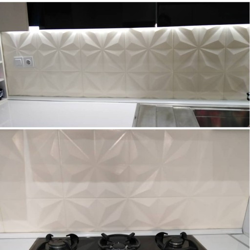 6 - قابلیت نصب پشت بخاری و گاز ( بشرط آنکه در معرض مستقیم آتش قرار نگیرد، برای گازهای صفحه ای بهتر است که شعله آخر بیشتر از ۸ سانت با دیوار فاصله داشته باشد، در ضمن متریال فوق کند سوز میباشد و آتش نمیگیرد)