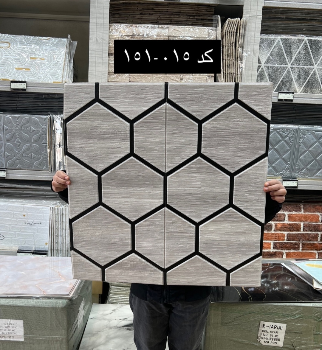 دیوار پوش فومی طرح شش ضلعی 70*70 طوسی